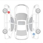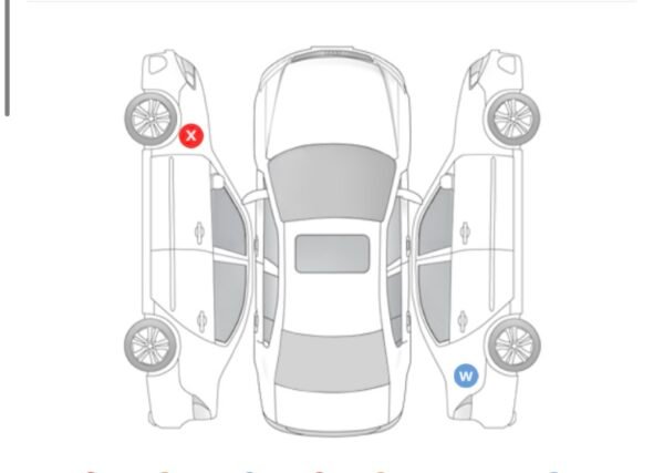ملاحظة x تغير قطعة في الرفرف الامامي يسار وملاحظة w رش في الرفرف خلف يمين
